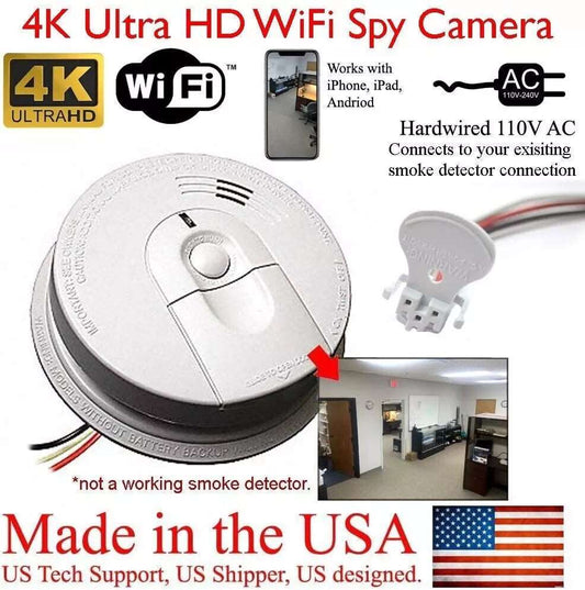 WiFi Hardwired Smoke Detector Camera 4K/1080P Resolution Motion Detect Audio for Home and Office Security Parental Monitoring of Underage Children